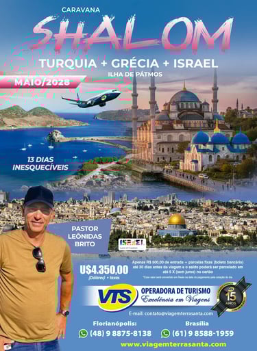 Venha com o Pastor Leônidas Brito para Turquia, Ilha de Patmos na Grécia e Israel em uma espiritual peregrinação!