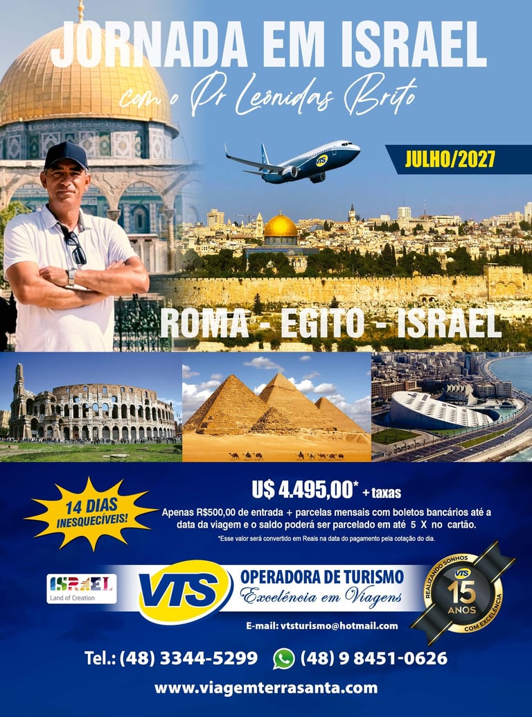 Venha com o Pastor Leônidas Brito para Itália, Egito e Israel em uma incrível e espiritual peregrinação!